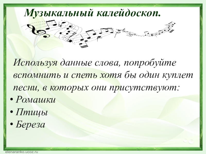 Используя данные слова, попробуйте вспомнить и спеть хотя бы один