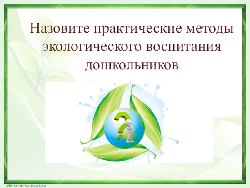 Слайд 17Назовите практические методы экологического воспитания дошкольников