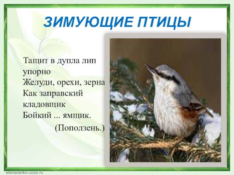 Слайд 31ЗИМУЮЩИЕ ПТИЦЫ