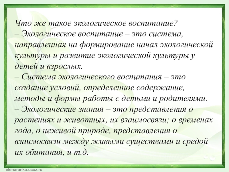 Слайд 9Что же такое экологическое воспитание?