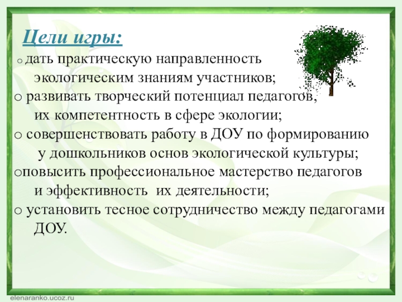 Слайд 4Цели экологического воспитания:
