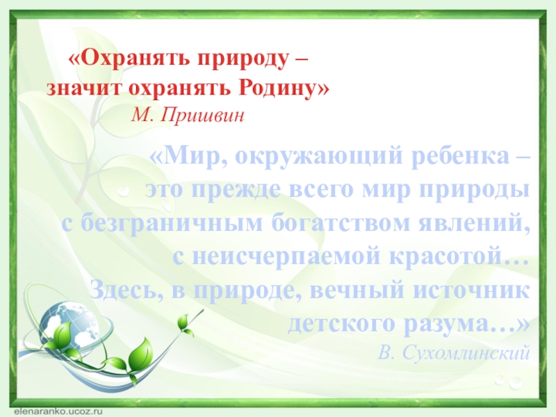 Слайд 3«Охранять природу –