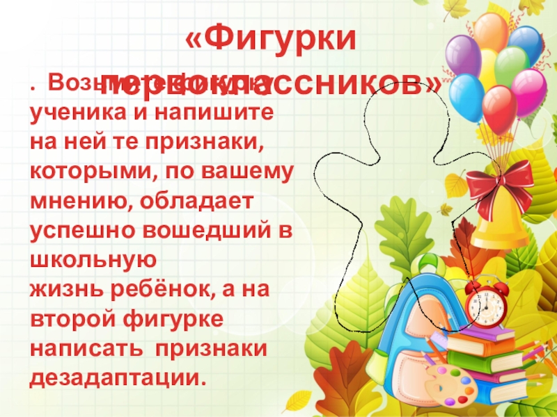 которыми, по вашему мнению, обладает успешно вошедший в школьную жизнь ребёнок, а на второй фигурке написать признаки дезадаптации.