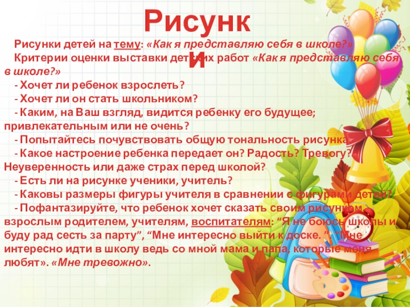 - Какое настроение ребенка передает он? Радость? Тревогу? Неуверенность или даже страх перед школой?