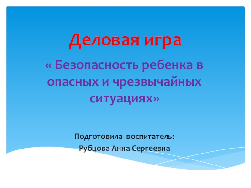 Деловая игра « Безопасность ребенка в опасных и чрезвычайных ситуациях»Подготовила воспитатель: Рубцова Анна Сергеевна
