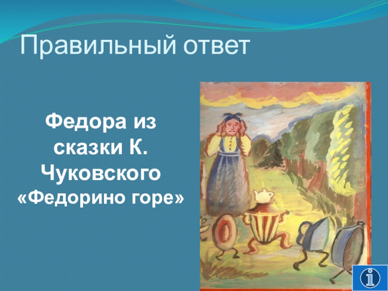Правильный ответФедора из сказки К.Чуковского «Федорино горе»