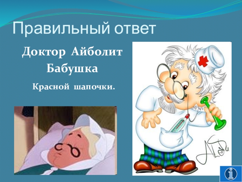 Правильный ответДоктор АйболитБабушка Красной шапочки.