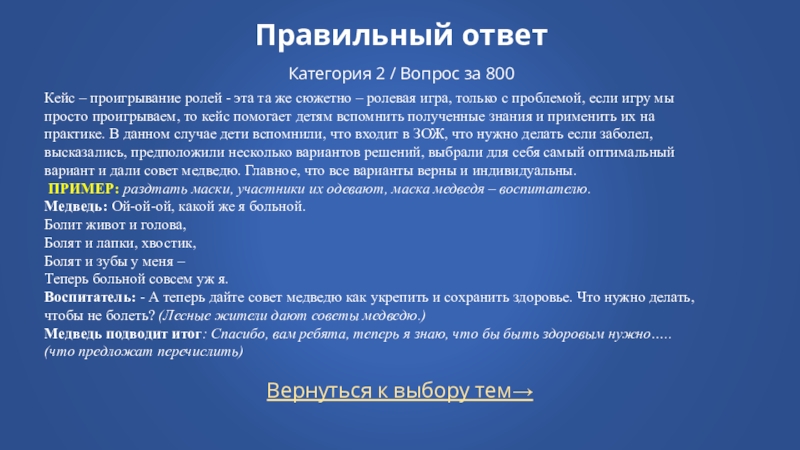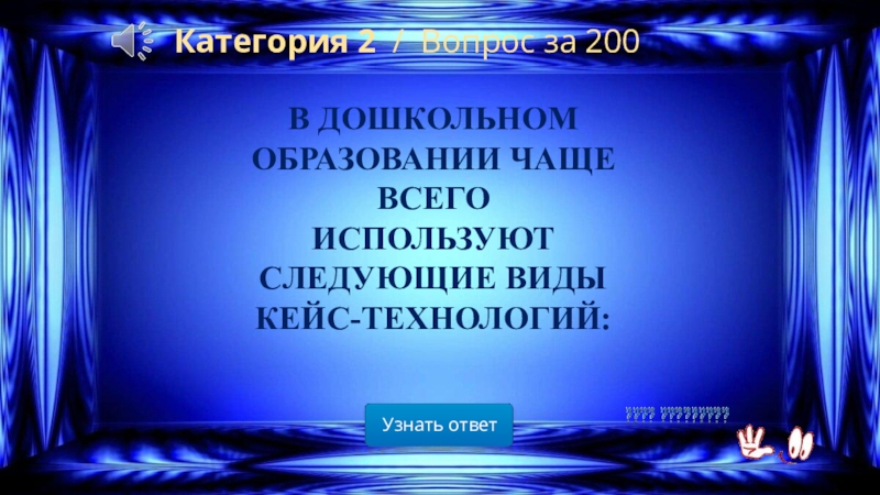 • текст (правильно поставленный вопрос, мотивирующий детей проанализировать проблему и принять оптимальное решение проблемы.