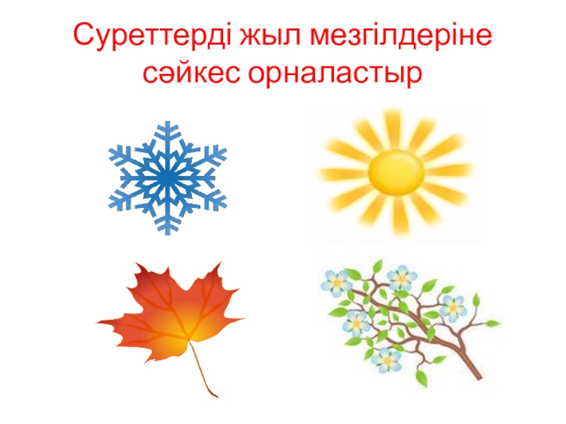 Слайд 7Суреттерді жыл мезгілдеріне сәйкес орналастыр