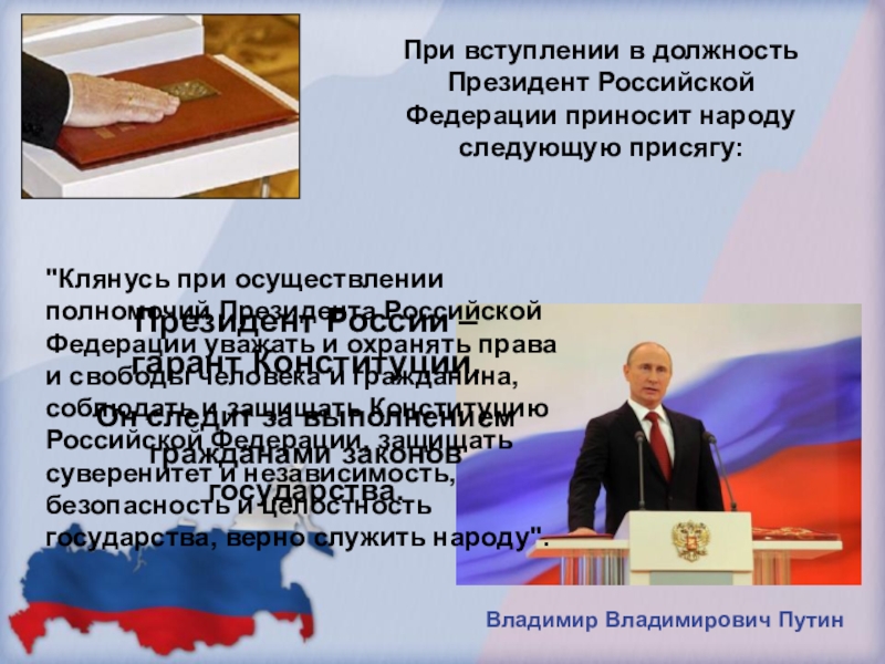 При вступлении в должность Президент Российской Федерации приносит народу следующую присягу: