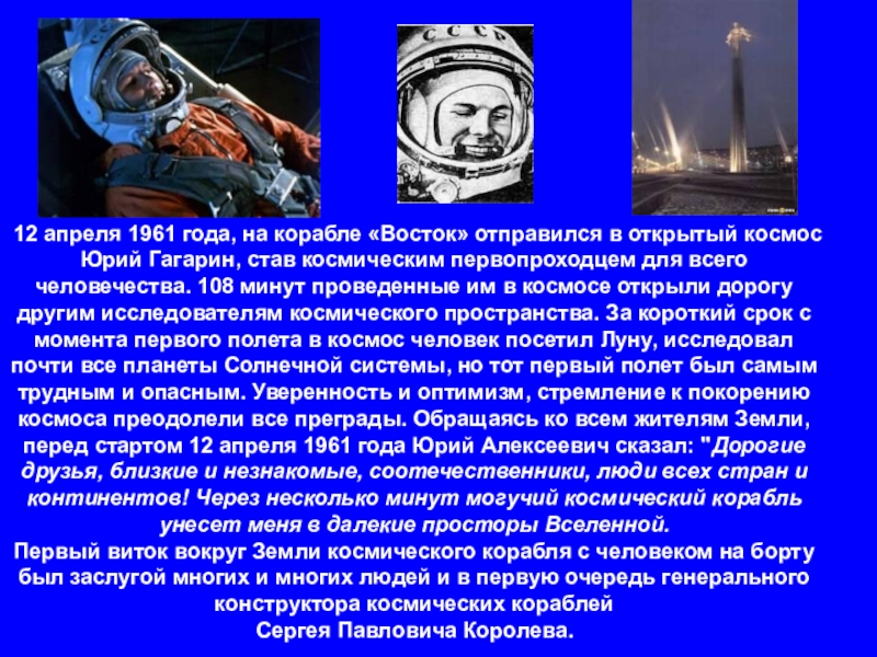 Он по праву является отцом отечественной ракетно-космической техники, обеспечившей стратегический паритет и сделавшей наше государство передовой ракетно-космической державой.