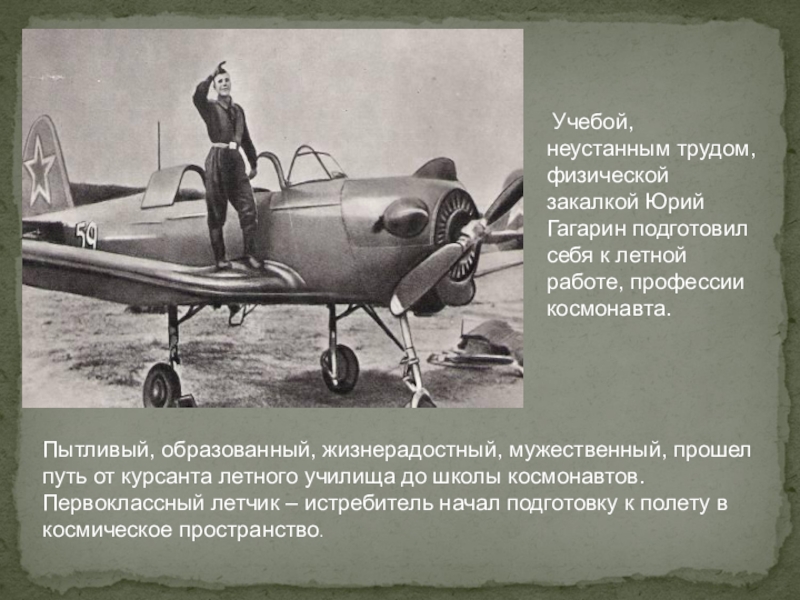 Пытливый, образованный, жизнерадостный, мужественный, прошел путь от курсанта летного училища до школы космонавтов. Первоклассный летчик – истребитель начал подготовку к полету в космическое пространство.
