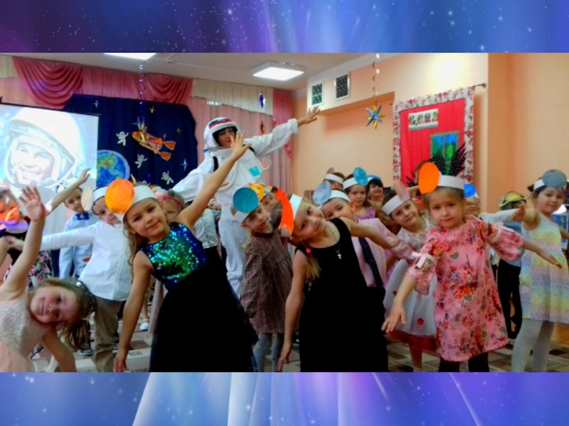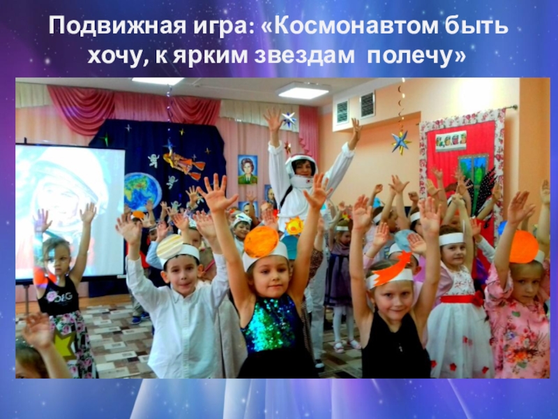 Слайд 14 Подвижная игра: «Космонавтом быть хочу, к ярким звездам полечу»