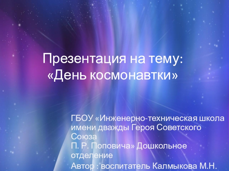 событие, навсегда вошедшее в мировую историю. С космодрома Байконур стартовал космический корабль «Восток -6». На его борту находилась первая женщина- космонавт Валентина Владимировна Терешкова