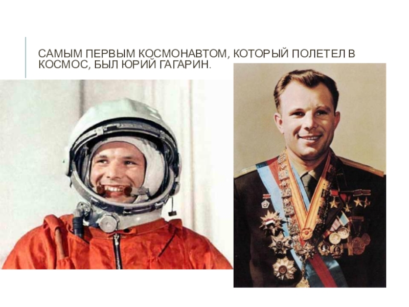 Слайд 3САМЫМ ПЕРВЫМ КОСМОНАВТОМ, КОТОРЫЙ ПОЛЕТЕЛ В КОСМОС, БЫЛ ЮРИЙ ГАГАРИН.