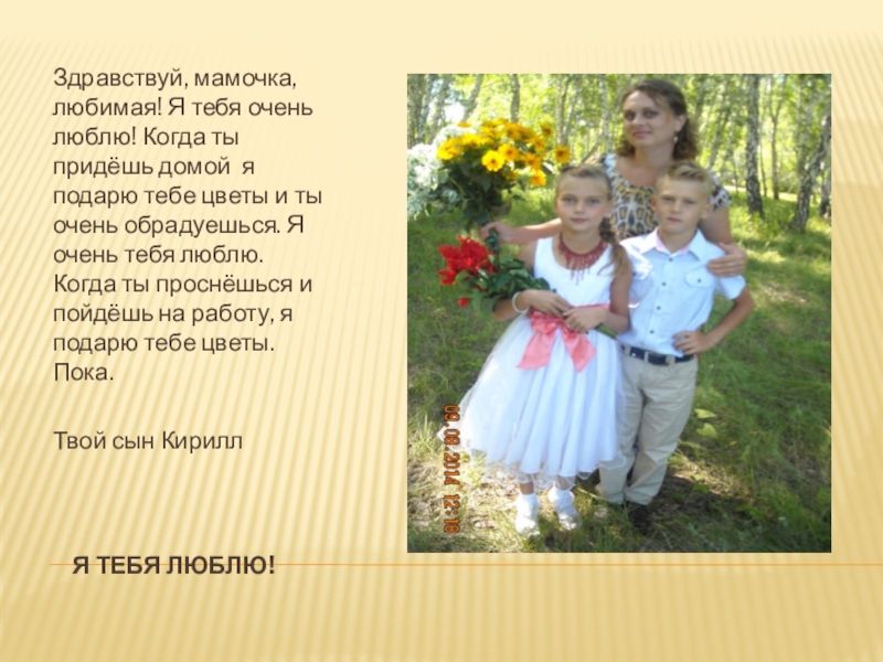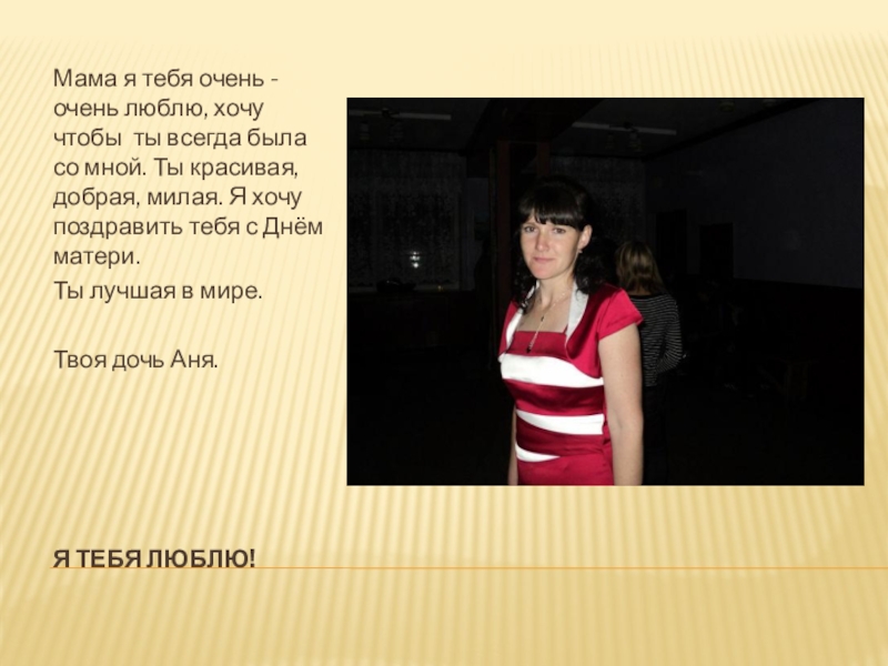 ты всегда была со мной. Ты красивая, добрая, милая. Я хочу поздравить тебя с Днём матери.