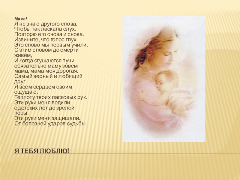 Здравствуй, мамочка, любимая! Я тебя очень люблю! Когда ты