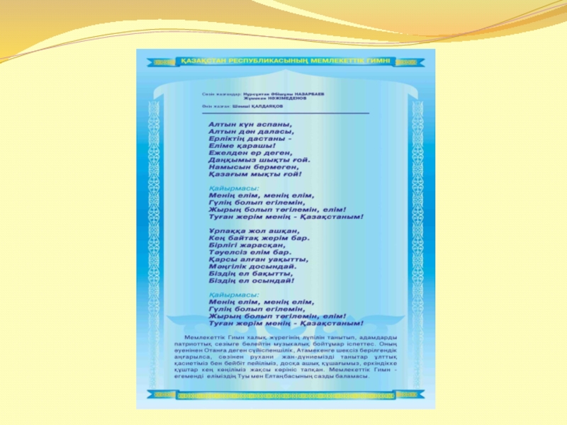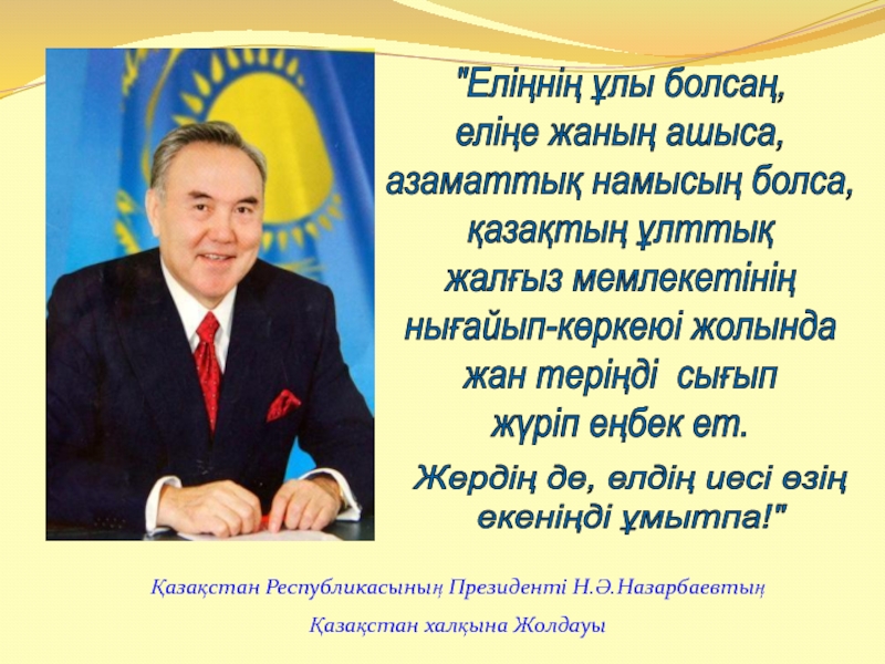 Слайд 5Қазақстан Республикасының Президенті Н.Ә.Назарбаевтың