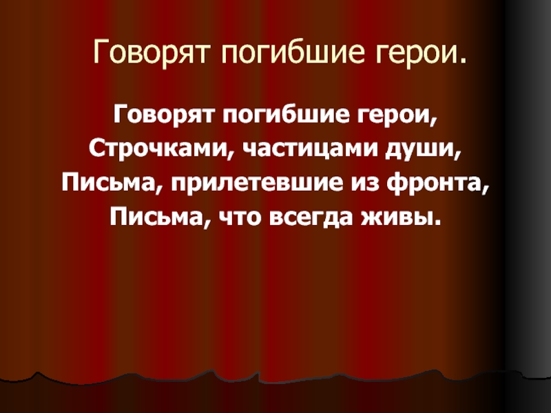 Слайд 15Говорят погибшие герои.