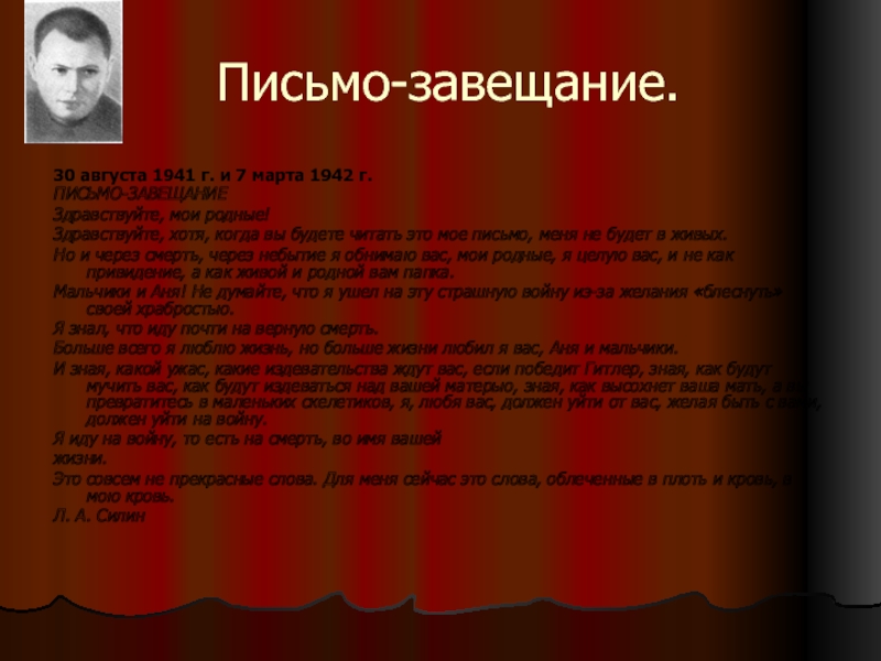Слайд 16Письмо-завещание.
