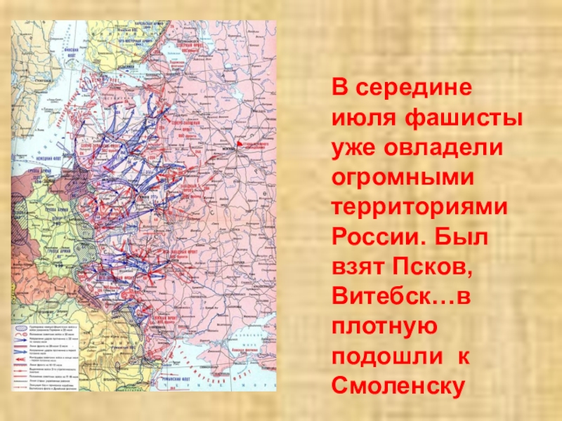 В середине июля фашисты уже овладели огромными территориями России. Был взят