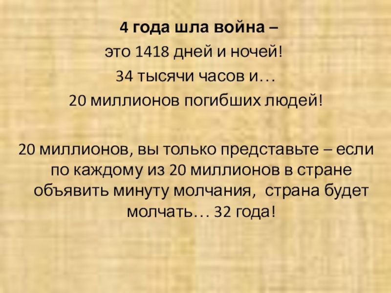 Слайд 15 4 года шла война –
