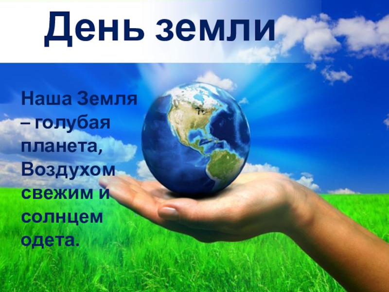 День землиНаша Земля – голубая планета, Воздухом свежим и солнцем одета.