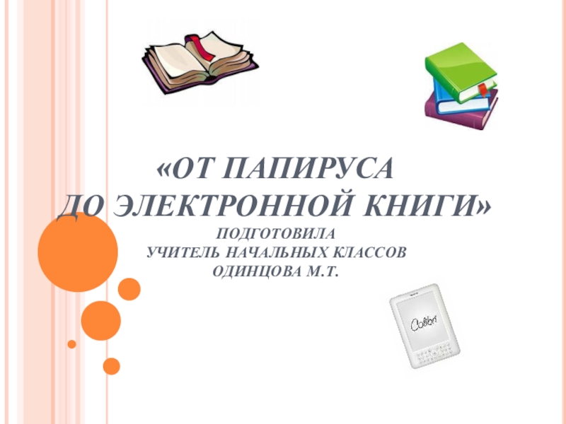 Слайд 1«ОТ ПАПИРУСА ДО ЭЛЕКТРОННОЙ КНИГИ» ПОДГОТОВИЛА УЧИТЕЛЬ НАЧАЛЬНЫХ КЛАССОВ ОДИНЦОВА М.Т.
