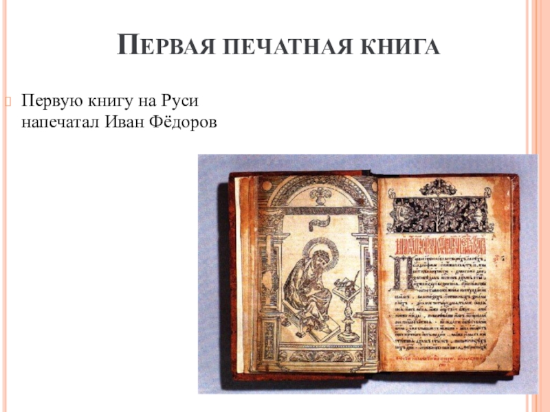 ПЕРВАЯ ПЕЧАТНАЯ КНИГАПервую книгу на Руси напечатал Иван Фёдоров