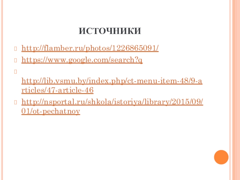 ИСТОЧНИКИhttp://flamber.ru/photos/1226865091/https://www.google.com/search?q http://lib.vsmu.by/index.php/ct-menu-item-48/9-articles/47-article-46http://nsportal.ru/shkola/istoriya/library/2015/09/01/ot-pechatnoy