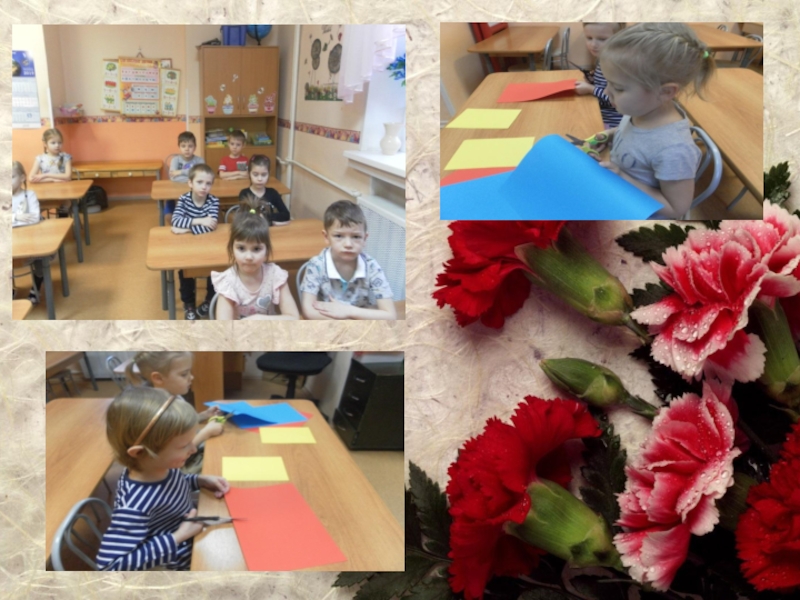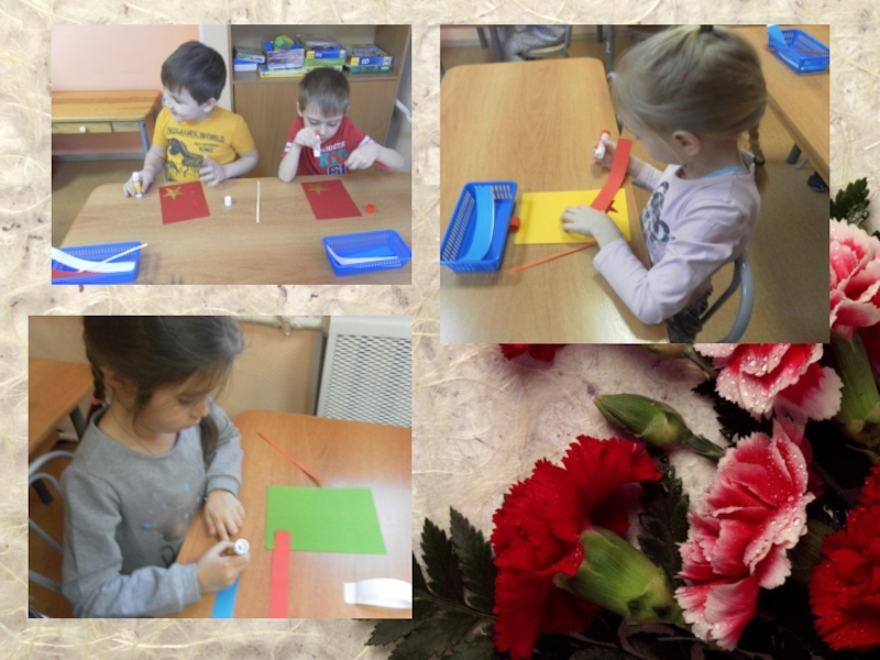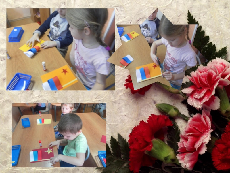 ЗадачиПродолжать развивать у детей любовь к Родине, к родным.Упражнять в вырезании одинаковых частей из бумаги.Закреплять умение красиво