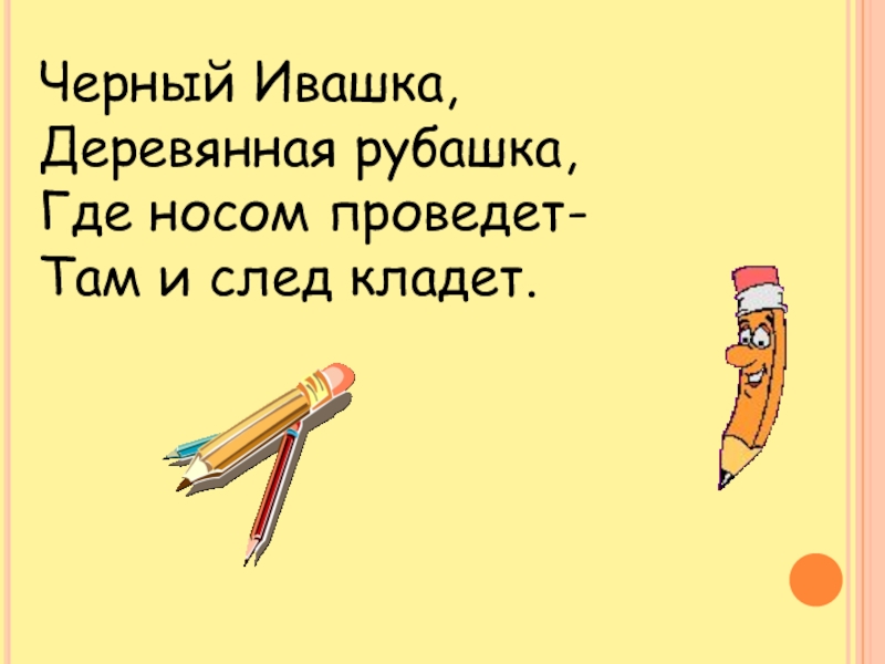 Черный Ивашка,Деревянная рубашка,Где носом проведет-Там и след кладет.