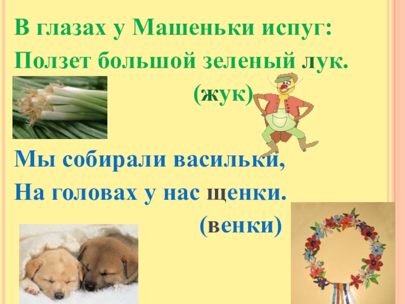 В глазах у Машеньки испуг:Ползет большой зеленый лук.
