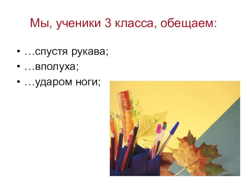 Мы, ученики 3 класса, обещаем:…спустя рукава;…вполуха;…ударом ноги;