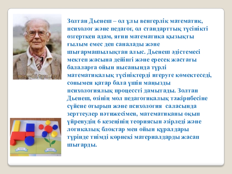 Слайд 2Золтан Дьенеш – ол ұлы венгерлік математик, психолог және педагог, ол стандарттық