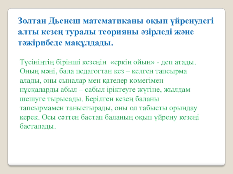 Слайд 3Золтан Дьенеш математиканы оқып үйренудегі алты кезең туралы теорияны әзірледі және