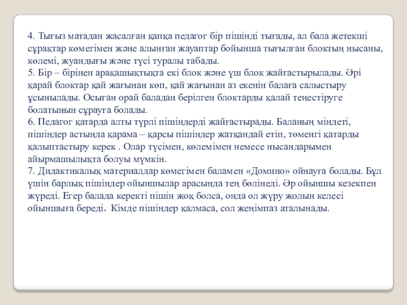 Слайд 8 Блоктармен ойынға кірісер алдында, баланы берілген дидкатикалық