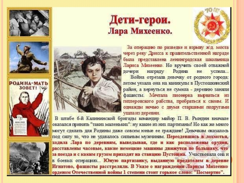 Слайд 1Дети – герои. ( ко Дню Победы )