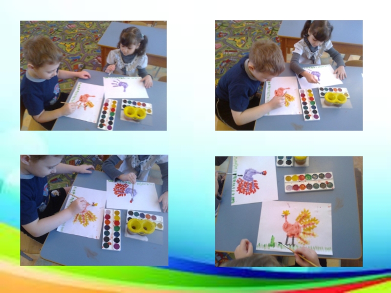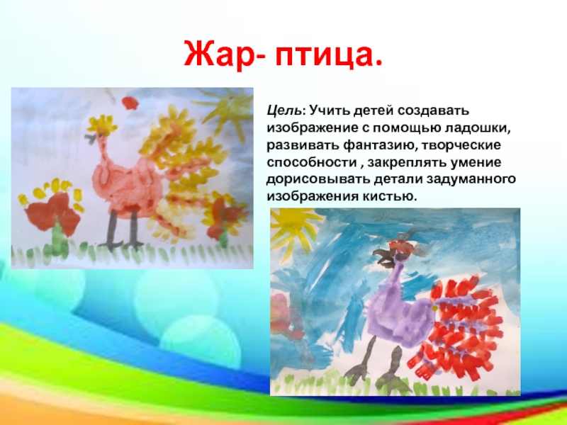 Цель: Учить детей создавать изображение с помощью ладошки, развивать фантазию,