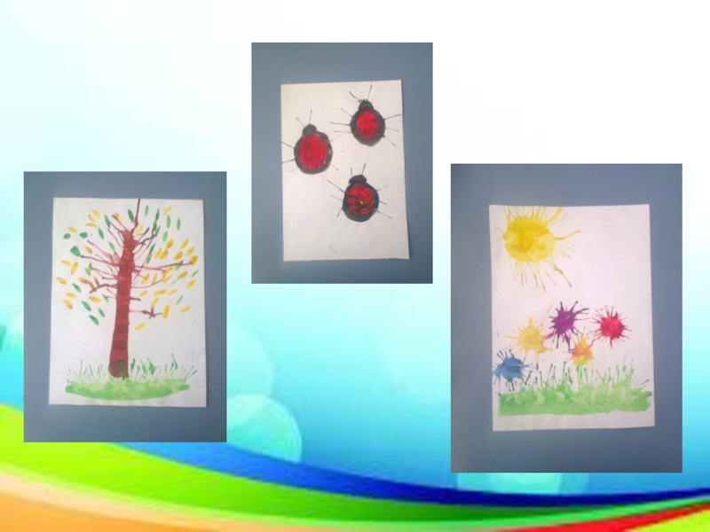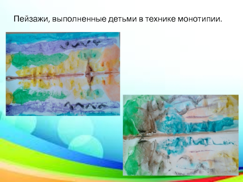 Слайд 14Пейзажи, выполненные детьми в технике монотипии.