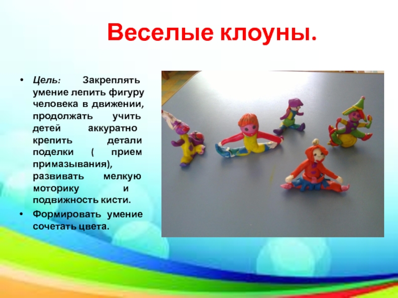 Цель: Закреплять умение лепить фигуру человека в движении, продолжать учить