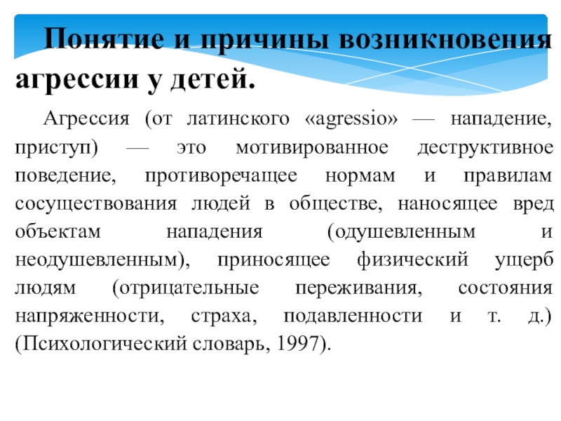 Слайд 3Понятие и причины возникновения агрессии у детей.