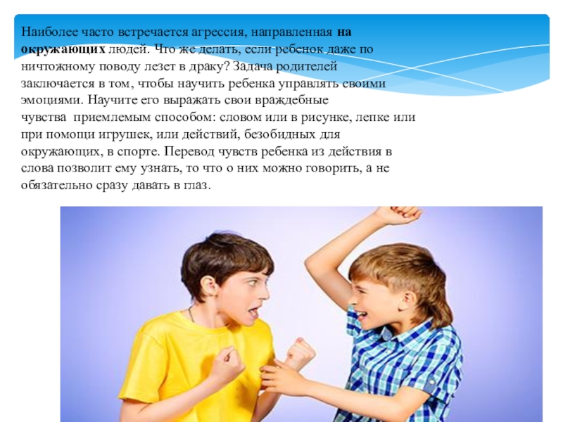 Слайд 7Наиболее часто встречается агрессия, направленная на окружающих людей. Что же делать, если
