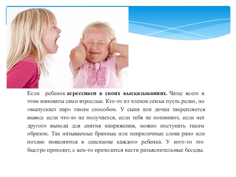 Слайд 6Если ребенок агрессивен в своих высказываниях. Чаще всего в этом виноваты сами взрослые.