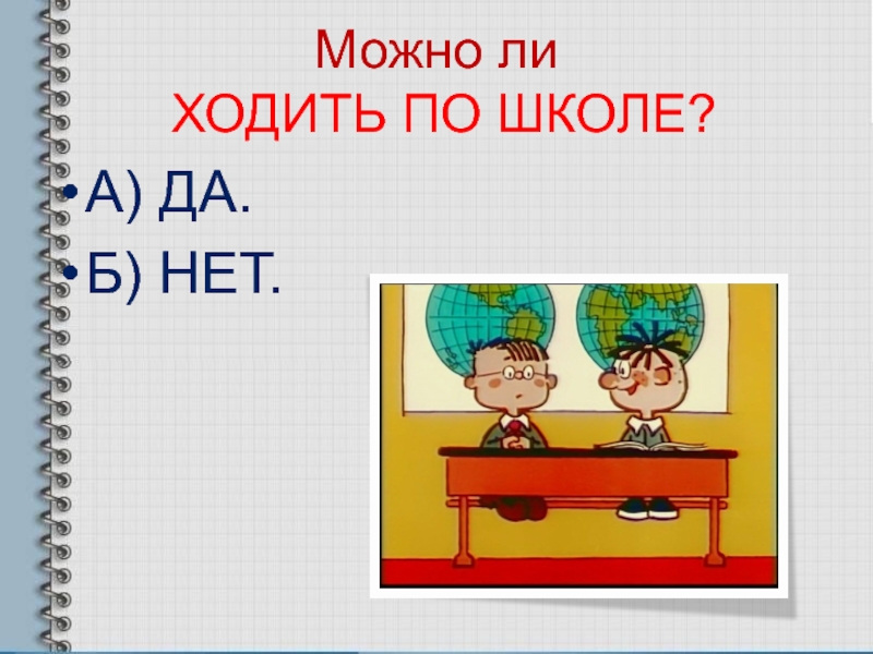 Можно ли   ХОДИТЬ ПО ШКОЛЕ?А) ДА.Б) НЕТ.