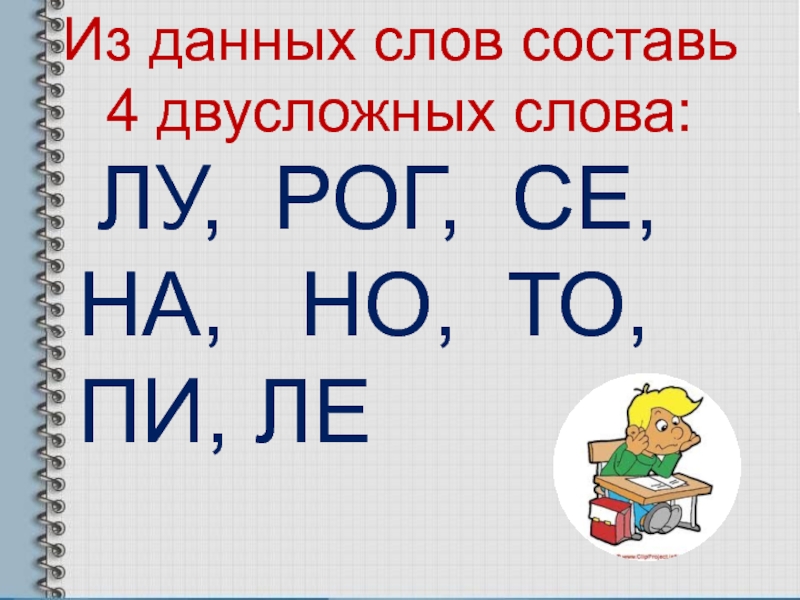 Слайд 2Из данных слов составь 4 двусложных слова: