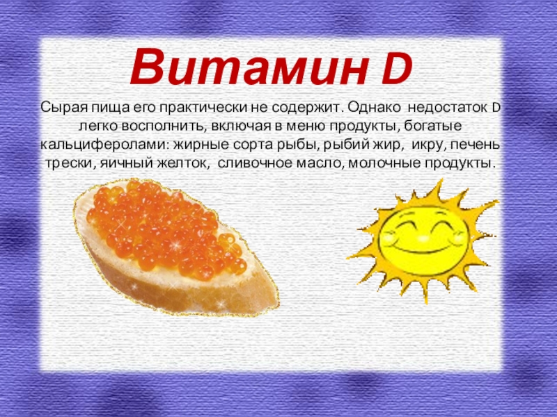 Сырая пища его практически не содержит. Однако недостаток D легко