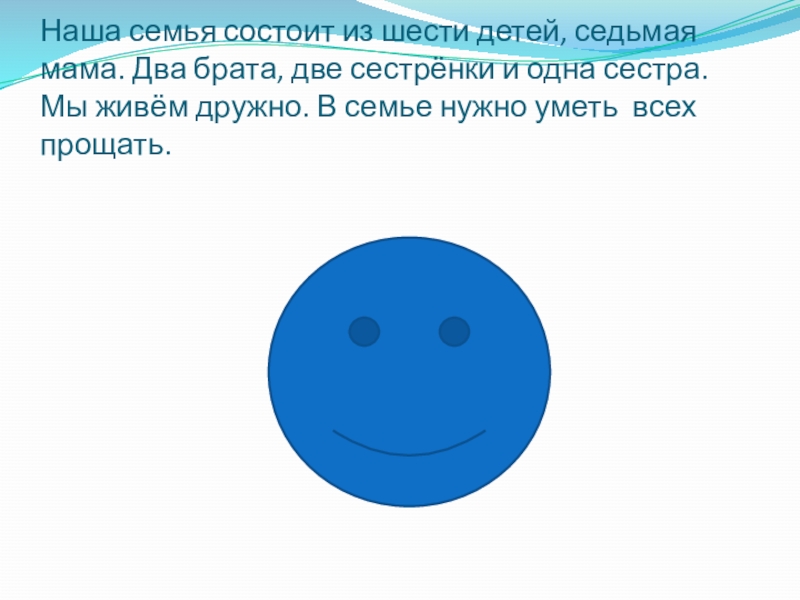 Слайд 4Наша семья состоит из шести детей, седьмая мама. Два брата, две