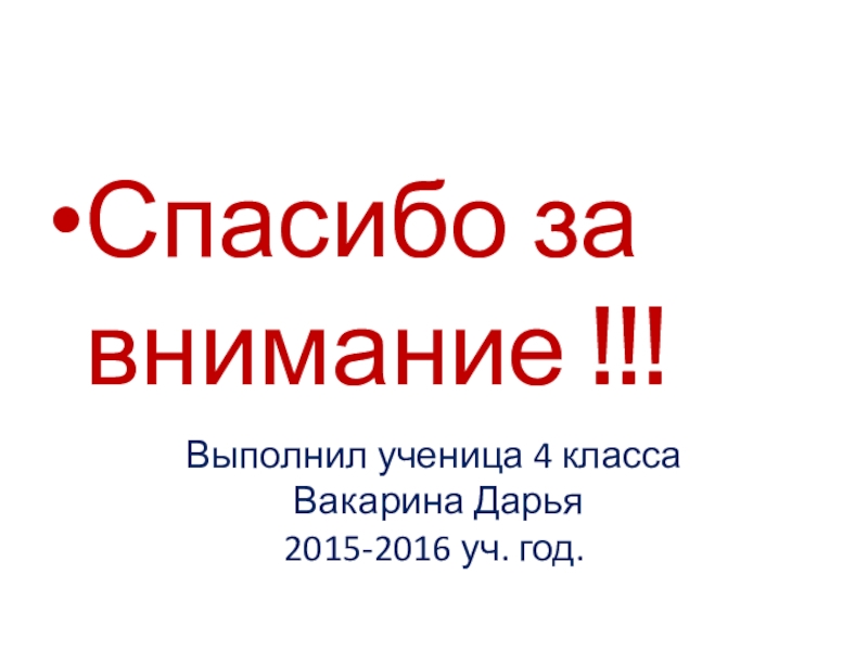 Спасибо за внимание !!!Выполнил ученица 4 класса Вакарина Дарья 2015-2016 уч. год.