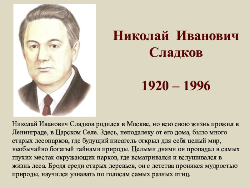 Николай Иванович Сладков родился в Москве, но